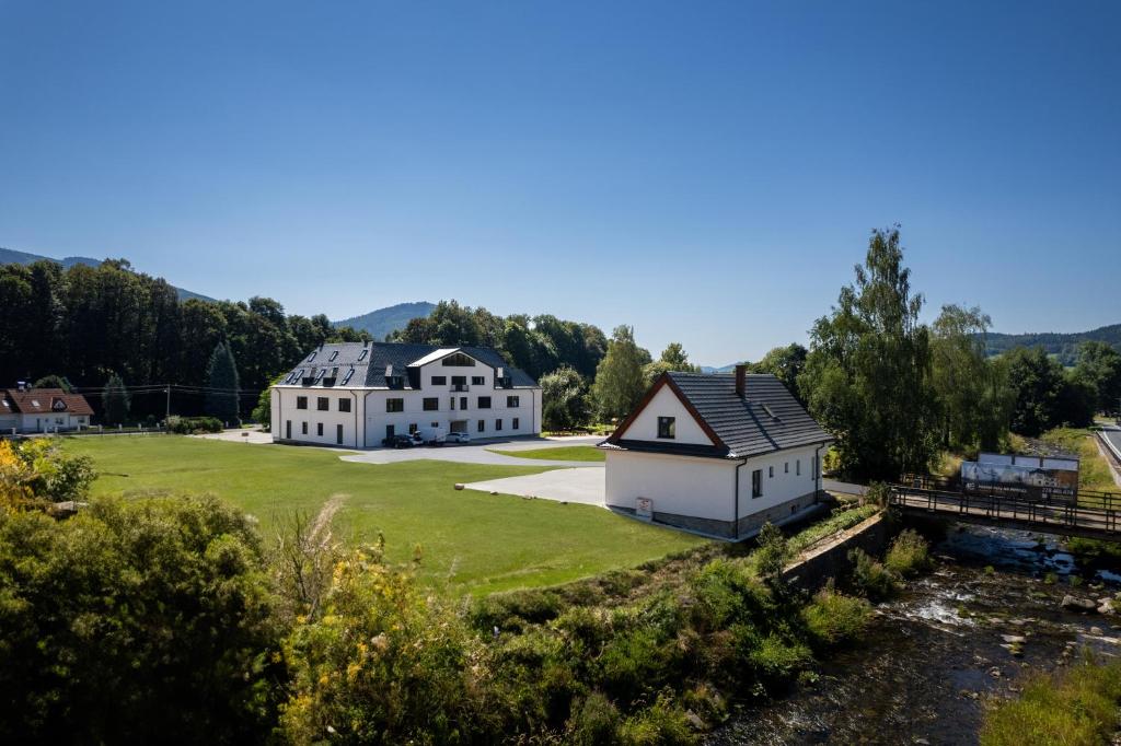 Objev Jeseníky has mountain views, free WiFi and free private parking, set in Šumperk, 8.5 km from Museum of Paper Velké Losiny. Boasting a lift, this property also provides guests with a children's playground. Featuring family rooms, Objev Jeseníky also provides guests with an outdoor fireplace.