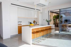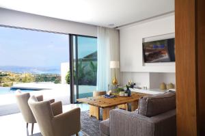 This villa's standout features are the pool with a view, hot tub and fireplace. Boasting a private entrance, this air-conditioned villa includes 1 living room, 3 separate bedrooms and 3 bathrooms with a walk-in shower and a bath. Guests will find a stovetop, a refrigerator, a dishwasher and kitchenware in the well-fitted kitchen. The villa also features a barbecue. Featuring a terrace with sea views, this villa also offers a washing machine and a flat-screen TV with streaming services. The unit has 4 beds.