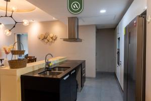 El apartamento cuenta con patio y vistas a la ciudad, y tiene 2 dormitorios, una sala de estar, TV, una cocina equipada con nevera y horno, y 3 baños con bañera de hidromasaje. El apartamento Ocean 2 BR Condo in Playa Carmen - Beachclub dispone de toallas y ropa de cama.