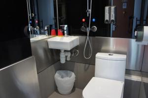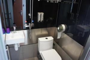 Rooms include a TV and a window offering a city view. Private bathrooms include hot/cold shower facilities and a hairdryer. Rooms feature additional space area with 2 single beds.