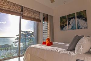 Cet appartement comporte 3 chambres, 3 salles de bains, du linge de lit, des serviettes, une télévision à écran plat avec les chaînes du câble, un coin repas, une cuisine entièrement équipée et une terrasse offrant une vue sur la mer.