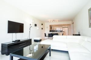 Camere: 1This spacious apartment is comprised of 1 living room, 2 separate bedrooms and 2 bathrooms with a bath and a shower. The well-equipped kitchen features a stovetop, a refrigerator, a dishwasher and kitchenware. The air-conditioned apartment offers a TV with cable channels, a washing machine, a tea and coffee maker, a seating area as well as sea views. The unit offers 5 beds.