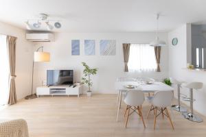 Guests will have a special experience as the villa provides a hot tub. Featuring a private entrance, this air-conditioned villa consists of 1 living room, 4 separate bedrooms and 1 bathroom with a bath and a hairdryer. In the well-fitted kitchen, guests will find a stovetop, a refrigerator, kitchenware and a microwave. The villa features tatami floors, a seating area with a flat-screen TV with streaming services, a washing machine, a tea and coffee maker, as well as a dining area. The unit offers 5 beds and 2 futons.