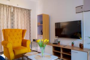 This air-conditioned apartment includes 4 living rooms, 4 separate bedrooms and 2 bathrooms with a bath. The kitchen has a refrigerator, kitchenware and a microwave. The apartment offers a washing machine, soundproof walls, a seating area, a flat-screen TV, as well as sea views. The unit has 6 beds.