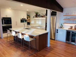 Номеров в отеле: 1This holiday home provides a pool with a view. Boasting a private entrance, this spacious holiday home also includes 6 separate bedrooms and 7 bathrooms with a bath and a shower. Meals can be prepared in the kitchen, which has a stovetop, a refrigerator, a dishwasher and kitchenware. The air-conditioned holiday home offers a flat-screen TV with streaming services, a washing machine, a tea and coffee maker, a wardrobe as well as sea views. В номере установлено 8 кроватей.