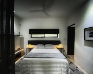 Camere: 1This modern solar-powered open plan holiday home has a lounge, a bedroom area with king size bed, and a bathroom with shower. The kitchen is fully equipped and the home offers a terrace with pool.