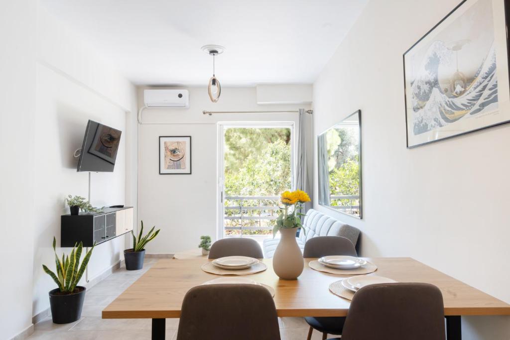 The apartment's kitchen, which features a refrigerator and a dishwasher, is available for cooking and storing food. The spacious air-conditioned apartment provides a flat-screen TV, a washing machine, a private entrance, a coffee machine as well as garden views. The unit offers 2 beds.