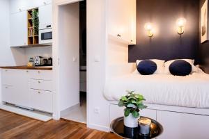 В этих апартаментах имеется гостиная и полностью оборудованная кухня с микроволновой печью и тостером. Полотенца и постельное белье включены в стоимость проживания в OIQIA • Jadéa • Saphir.