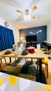Boasting a private entrance, this air-conditioned villa includes 1 living room, 3 separate bedrooms and 1 bathroom with a bath and a shower. In the well-fitted kitchen, guests will find a stovetop, a refrigerator, kitchenware and a microwave. The villa offers a washing machine, tatami, soundproof walls, a tea and coffee maker and a flat-screen TV. The unit has 5 beds and 3 futons.