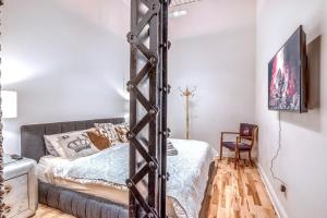 Old Port Elegance and Designer Loft with PV Terrace dispone di 1 camera da letto, aria condizionata, soggiorno e TV a schermo piatto.