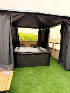 The hot tub is the standout feature of this apartment. The air-conditioned apartment has 2 bedrooms and 1 bathroom with a bath or a shower and a hairdryer. The fully equipped kitchen features a stovetop, a refrigerator, kitchenware and a microwave. Boasting a terrace with a quiet street view, this apartment also features a dining area and a flat-screen TV with cable channels. V této ubytovací jednotce se nachází 2 postele.