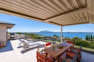 This holiday home boasts a pool with a view, hot tub and fireplace. Featuring a private entrance, this air-conditioned holiday home consists of 2 living rooms, 6 separate bedrooms and 4 bathrooms with a walk-in shower and a bath. Guests will find a stovetop, a refrigerator, a dishwasher and kitchenware in the well-equipped kitchen. The holiday home also offers a barbecue. The spacious holiday home provides a washing machine, a tea and coffee maker, a seating area as well as a terrace with lake views. The unit offers 10 beds.