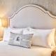 The world class accommodations at Omni La Costa include luxurious bedding, a coffee machine with premium coffee, a marble bath and a small refrigerator.