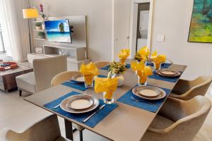 Guests will have a special experience as the apartment provides a private pool. This spacious apartment consists of 1 living room, 2 separate bedrooms and 2 bathrooms with a hairdryer. Guests can make meals in the kitchen that is equipped with a stovetop, a refrigerator, a dishwasher and kitchenware. This apartment features air conditioning, a washing machine, a TV with cable channels and a patio. The unit offers 4 beds.