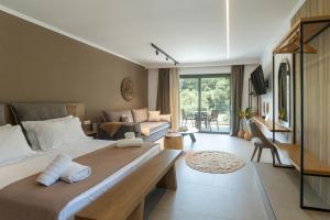In der Unterkunft Onar Luxury Suites Parga sind die Zimmer ausgestattet mit einer Klimaanlage, einem Schreibtisch, einer Terrasse mit Bergblick, einem eigenen Badezimmer, einem Flachbild-TV, Bettwäsche und Handtüchern. Die Wohneinheiten bieten den Gästen einen Kleiderschrank und eine Kaffeemaschine.