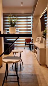 This studio offers a rooftop pool. The studio provides air conditioning, a washing machine, as well as a private bathroom featuring a shower and a bidet. The fully equipped kitchen features a stovetop, a refrigerator, kitchenware and a microwave. This studio has soundproof walls, a tea and coffee maker, a flat-screen TV and a balcony. The unit offers 2 beds.