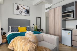 Ilość pokoi: 1The studio provides a wardrobe, heating, as well as a private bathroom boasting a shower and a hairdryer. The well-equipped kitchenette has a refrigerator, kitchenware, an oven and a microwave. The studio features a private entrance, a coffee machine, a seating area, a flat-screen TV with streaming services, as well as city views. The unit has 1 bed.