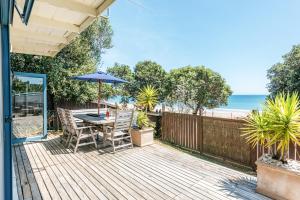 Dom wakacyjny Onetangi Waterfront Bach - Coast & Country z tarasem oferuje dwie sypialnie, salon z TV, łazienkę z prysznicem oraz kuchnię z lodówką i zmywarką. Z obiektu Onetangi Waterfront Bach - Coast & Country roztacza się widok na morze. W domu wakacyjnym dla Gości przygotowano ręczniki i pościel.