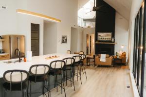 The fireplace is a top feature of this holiday home. This spacious holiday home comes with 2 living rooms, 3 separate bedrooms and 5 bathrooms with a hairdryer and free toiletries. Guests will find a stovetop, a refrigerator, a dishwasher and kitchenware in the well-fitted kitchen. The holiday home also includes a barbecue. The air-conditioned holiday home features a TV with streaming services, a washing machine, a private entrance, a tea and coffee maker as well as lake views. The unit has 11 beds.