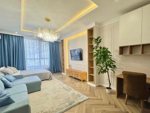 This spacious apartment includes 1 living room, 1 separate bedroom and 1 bathroom with a bath and free toiletries. In the well-equipped kitchen, guests will find a stovetop, a refrigerator, an oven and a microwave. The air-conditioned apartment offers a flat-screen TV with satellite channels, a washing machine, soundproof walls, a tea and coffee maker as well as garden views. The unit has 4 beds.