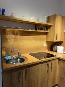 Featuring a private entrance, this apartment is comprised of 1 living room, 1 separate bedroom and 1 bathroom with a bath and a shower. The well-equipped kitchen has a stovetop, a refrigerator and kitchenware. The apartment features parquet floors, a seating area with a flat-screen TV with cable channels, a dining area, a wardrobe, as well as an electric kettle. The unit offers 2 beds.
