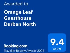 Obiekt Orange Leaf Unit 1, usytuowany w miejscowości Durban, oferuje ogród, bezpłatny prywatny parking, centrum spa i odnowy biologicznej oraz usługi masażu. Odległość od ważnych miejsc: Plaża Beachwood Beach - 2,8 km. W pobliżu obiektu znajdują się następujące atrakcje: Stadion Moses Mabhida ( 7,1 km), Centrum kongresowe ICC w Durbanie ( 9 km), Ogród botaniczny Durban ( 10 km). We wszystkich pomieszczeniach obiektu zapewniono bezpłatne Wi-Fi. Odległość od ważnych miejsc: Stadion Kings Park - 6,1 km.