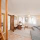 This apartment with garden views includes a bedroom with satellite flat-screen TV, an equipped kitchen with a dining table, a seating area, and a bathroom fitted with a shower. It is located at the ground floor and suitable for disabled guests.