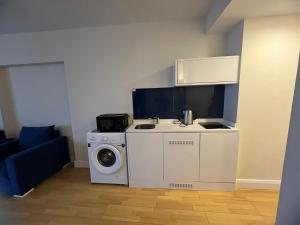 - Small kitchen area,