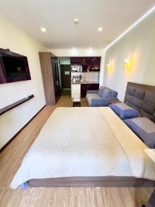 The air-conditioned apartment features 1 bedroom and 1 bathroom with a shower and a bidet. Guests will find a stovetop, a refrigerator, kitchenware and a microwave in the well-fitted kitchenette. The apartment also provides guests with a barbecue. Featuring a terrace with sea views, this apartment also provides a washing machine and a flat-screen TV. The unit offers 2 beds.