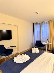 The well-fitted kitchen has a stovetop, a refrigerator, kitchenware and a microwave. The air-conditioned apartment features a flat-screen TV, a washing machine, a private entrance, soundproof walls as well as sea views. The unit has 1 bed.