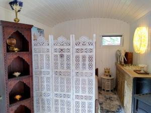 This holiday home's standout features are the sauna and fireplace. Boasting a private entrance, this air-conditioned holiday home includes a kitchenette, 1 bedroom and 1 bathroom with a shower and a hairdryer. Guests will find a stovetop, a refrigerator, a dishwasher and kitchenware in the well-equipped kitchenette. The holiday home also features a barbecue. Featuring a terrace with garden views, this holiday home also offers soundproof walls and a flat-screen TV with streaming services. V této ubytovací jednotce se nachází 1 postel.