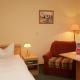 Cosy room with a cushioned seating area, satellite TV, a minibar, radio, direct-dial telephone and a private bathroom with shower and hairdryer. The double bed is fitted with separate mattresses.