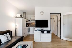 Apartmán Ostseeperle mit Schwimmbad zahrnuje 1 ložnici, plně vybavenou kuchyň s lednicí a myčkou a 1 koupelnu se sprchou. V apartmánu ubytování nechybí TV a koupelna s fénem.