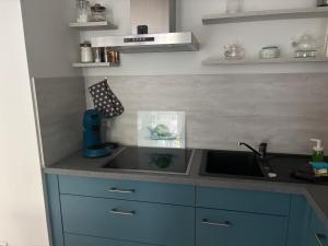 Apartmán Ostseetraum 04 - Aquamarin se skládá z 1 ložnice, obývacího pokoje, plně vybavené kuchyně s lednicí a myčkou a 1 koupelnu. V koupelně ubytování ubytování nechybí sprcha ani fén.