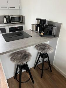 Questo appartamento con 1 camera da letto ha un soggiorno con TV a schermo piatto, un angolo cottura con utensili, frigorifero e lavastoviglie, e 1 bagno con asciugacapelli. Asciugamani e lenzuola sono inclusi nei servizi di Ottens - Ferienwohnung I Magdalenen Hof.