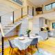 Dieses Ferienhaus ist versehen mit 2 Schlafzimmern, einer Küche mit einem Kühlschrank und einem Geschirrspüler, 1 Badezimmer mit einer Badewanne, kostenlosen Pflegeprodukten und einer Waschmaschine. In diesem Ferienhaus werden Handtücher und Bettwäsche angeboten.