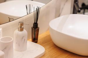 Klimatizovaný apartmán Ōura - Designer Apartment with Private Parking & AC nabízí TV s plochou obrazovkou, 1 ložnici a obývací pokoj.