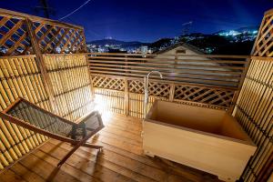 This holiday home's special features are the hot tub and the private open-air bath. Featuring a private entrance, this air-conditioned holiday home consists of 1 living room, 2 separate bedrooms and 2 bathrooms with a bath and a shower. The fully equipped kitchen features a stovetop, a refrigerator, kitchenware and a microwave. The spacious holiday home provides a flat-screen TV, a washing machine, tatami, a coffee machine as well as a quiet street view. The unit offers 4 beds and 2 futons.