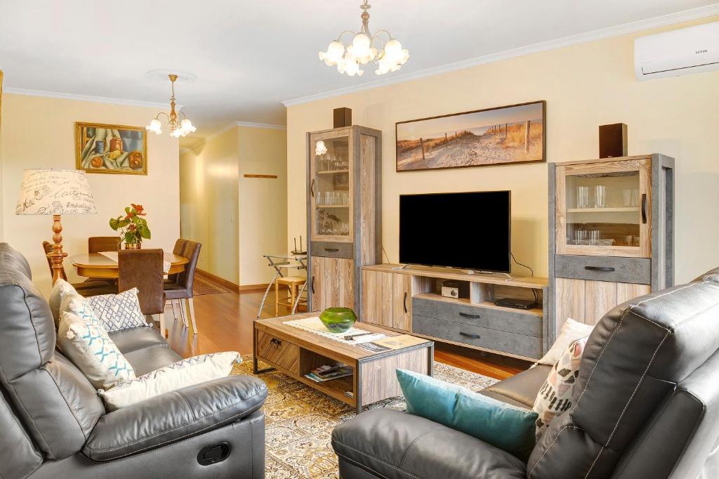 Das Palheiro Residence Vista Mar umfasst zwei Schlafzimmer, zwei Badezimmer und Bettwäsche. Handtüchern, einem TV mit Kabelkanälen, einer voll ausgestatteten Küche und einem Balkon mit Stadtblick.