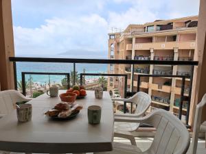Diese Ferienwohnung mit einem Balkon und Meerblick hat 2 Schlafzimmer, ein Wohnzimmer, einen Flachbild-TV, eine gut ausgestattete Küche mit einem Kühlschrank und einer Mikrowelle sowie 1 Badezimmer mit einer Badewanne.