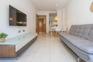 The apartment with a terrace and garden views features 1 bedroom, a living room, a flat-screen TV, an equipped kitchen with an oven and a microwave, and 1 bathroom with a bidet. Towels and bed linen are featured at Palmera del mar.