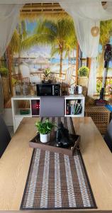 Apartmán Palms Zimmer má 2 ložnice, plně vybavenou kuchyň s lednicí a myčkou a 1 koupelnu s vanou. Součástí vybavení apartmánu ubytování je TV s plochou obrazovkou a koupelna s fénem.