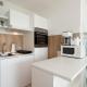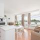 L'appartamento di Panoramic Ginys Meerblick Appartement, con balcone vista mare, offre 1 camera da letto, soggiorno, TV, cucina con frigo e lavastoviglie e 1 bagno con doccia.