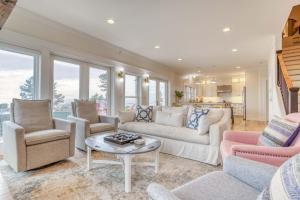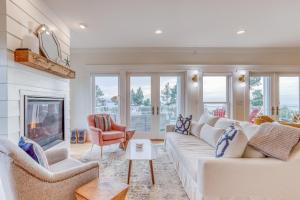 Guests will have a special experience as this holiday home features a fireplace. Featuring a private entrance, this spacious holiday home also is comprised of 4 separate bedrooms and 5 bathrooms with a walk-in shower and a bath. Guests will find a stovetop, a refrigerator, a dishwasher and kitchenware in the well-equipped kitchen. The holiday home also has a barbecue. The holiday home offers a TV with streaming services, a washing machine, a tea and coffee maker, a dining area as well as sea views. The unit offers 6 beds.