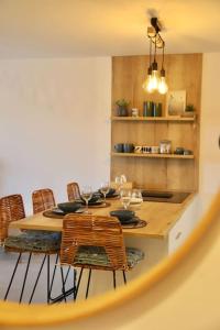 Apartmán v ubytování má 1 ložnici, TV s plochou obrazovkou a kuchyň s lednicí, myčkou, pračkou, troubou a mikrovlnnou troubou. Apartmán Paradis Bleu - Vue Lac avec Terrasse & Garage poskytuje hostům ručníky a ložní prádlo.