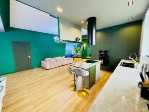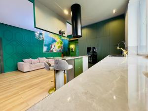This spacious apartment features 1 living room, 2 separate bedrooms and 2 bathrooms with a shower and free toiletries. In the fully equipped kitchen, guests will find a stovetop, a refrigerator, a dishwasher and kitchenware. The air-conditioned apartment features a flat-screen TV with cable channels, a washing machine, a tea and coffee maker, a seating area as well as city views. V této ubytovací jednotce se nachází 3 postele.