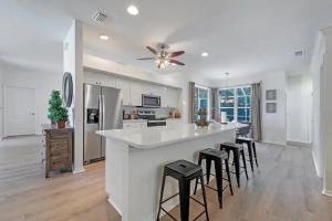 Diese Villa mit Klimaanlage ist versehen mit 4 Schlafzimmern, Flachbild-TV und einer Küche mit einem Kühlschrank und einem Geschirrspüler In dieser Villa werden Handtücher und Bettwäsche angeboten.