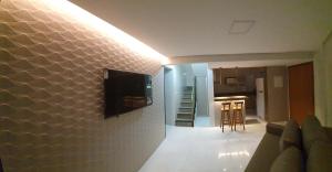 Cet appartement comprend 4 chambres, un salon avec une télévision à écran plat, une cuisine équipée, ainsi que 3 salles de bains avec une douche et un bain à remous. L’hébergement Paradise Temporada Cobertura 4 Quartos com Jacuzzi e Churrasqueira no Thermas Paradise - Rio Quente met à votre disposition un parking privé.