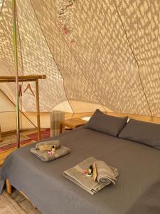 Cette tente de luxe comprend une cuisine avec un réfrigérateur et une plaque de cuisson, ainsi qu’une machine à café. Des serviettes et du linge de lit sont disponibles à Paraiso Bell Tent.