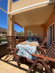 Featuring a terrace and sea views, the spacious apartment at the property includes 2 bedrooms, a living room, a flat-screen TV, 2 bathrooms with a bidet, and an equipped kitchen with an oven and dishwasher. Towels and bed linen are available at PARAISO TURQUESA Vera textil. PARAISO TURQUESA Vera textil includes an outdoor dining area.